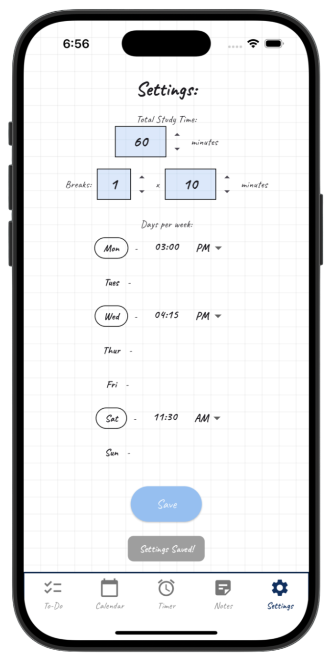 Customize your timer and study schedule to what works best for you!