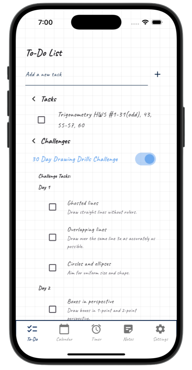 Remember your tasks and goals with the built in To Do list!