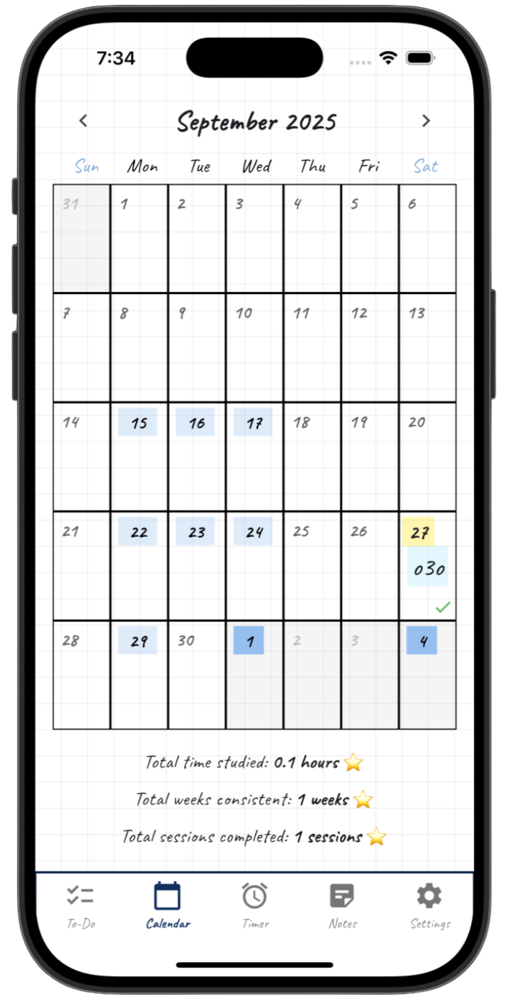 See your study schedule and your study stats!